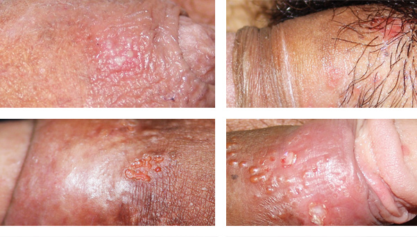 Los síntomas genitales incluyen la aparición de ampollas pequeñas y dolorosas, llenas de un líquido claro o color paja. Generalmente se encuentran en las siguientes zonas: