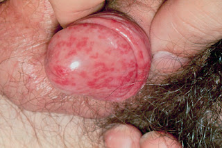 Los síntomas pueden o no implicar el área del pene o el area genital.